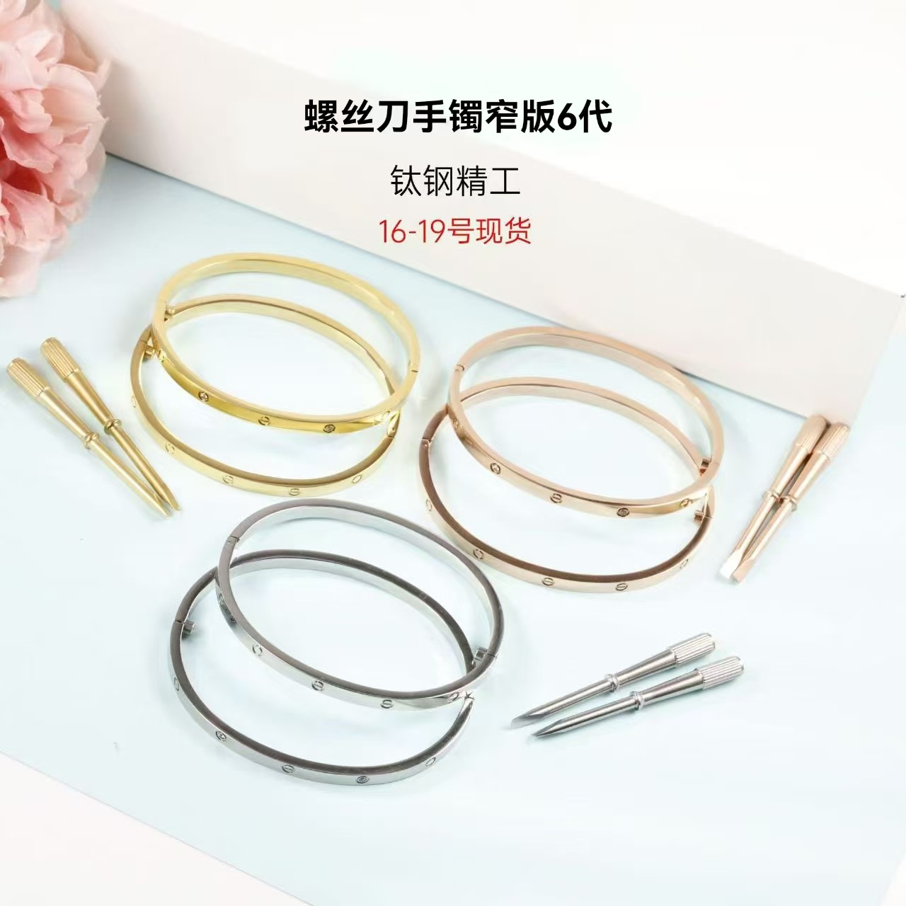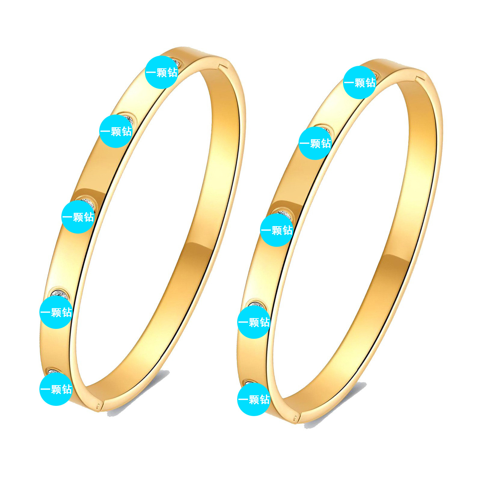 18K Rose Gold Narrow Edition Card Plus Bracelet Women's Ten Diamond Not Falling Narrow Edition One Nail One Diamond Couple Titanium Bracelet