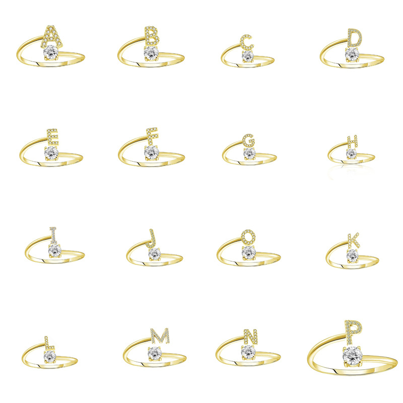Cross-border source 925 sterling silver 26 gold letter ring Women's temperament fashion ins opening adjustable ring