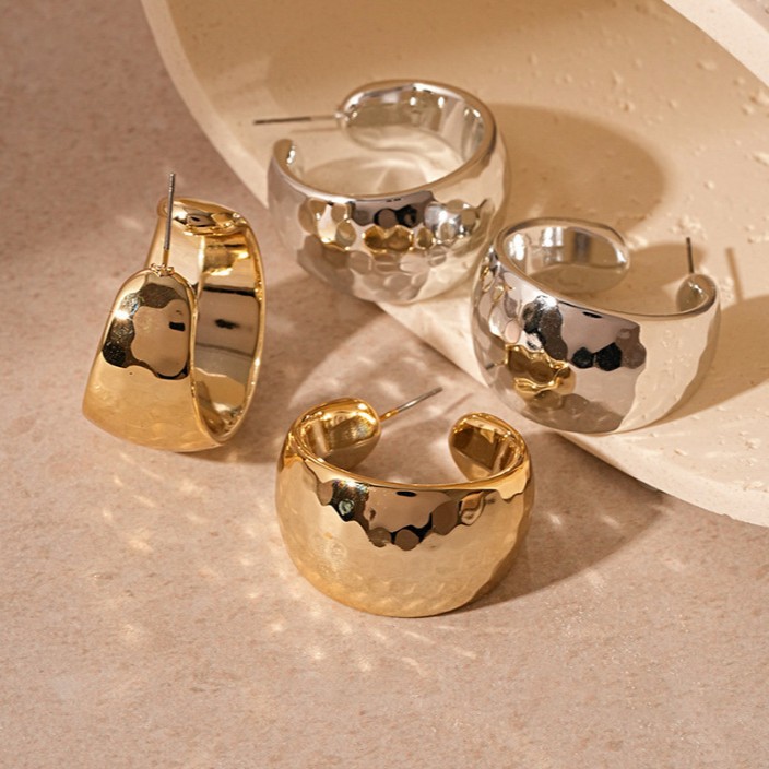 European and American Exaggerated Metallic Wide-Brimmed C-Shaped Earrings, Personalized Niche Elegant, High-End Geometric Ins Earrings for Women