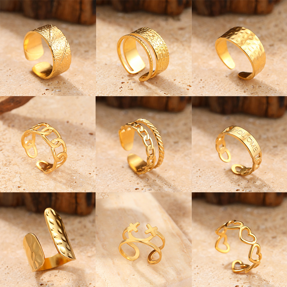 European and American popular stainless steel love opening ring female personality hip hop line cross heart titanium steel ring wholesale