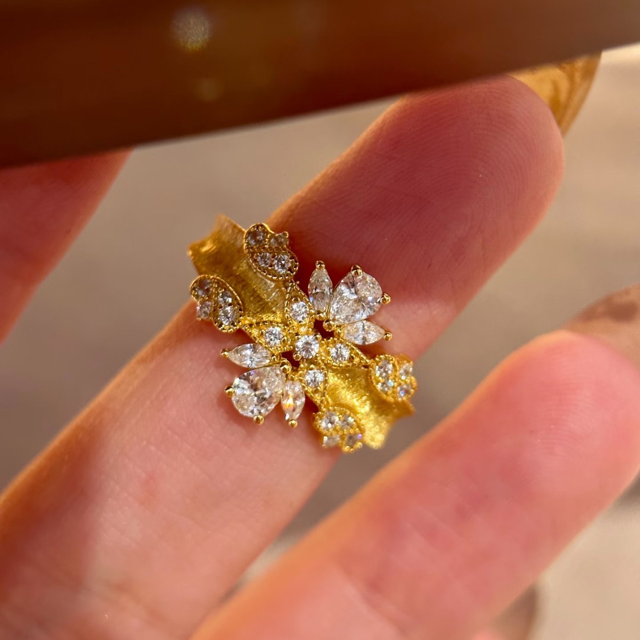 New Lace Star Ring for Women with Sparkling Diamonds, Brushed Elegant, Light Luxury, Niche, High-End, Simple and Versatile Design Ring