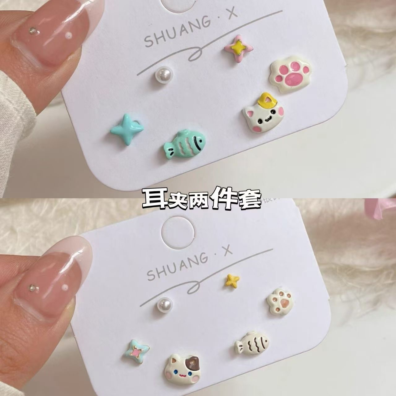 Cat Taiyaki Ear Clip Female Niche Design Small Funny Cute Cartoon Cat Claw Fish Earrings Stud Earrings