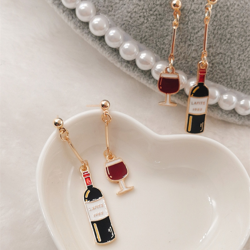 2021 Cross-Border Wine Glass Earrings Mini Food Jewelry Gifts for Wine Lovers Women's Small Earrings
