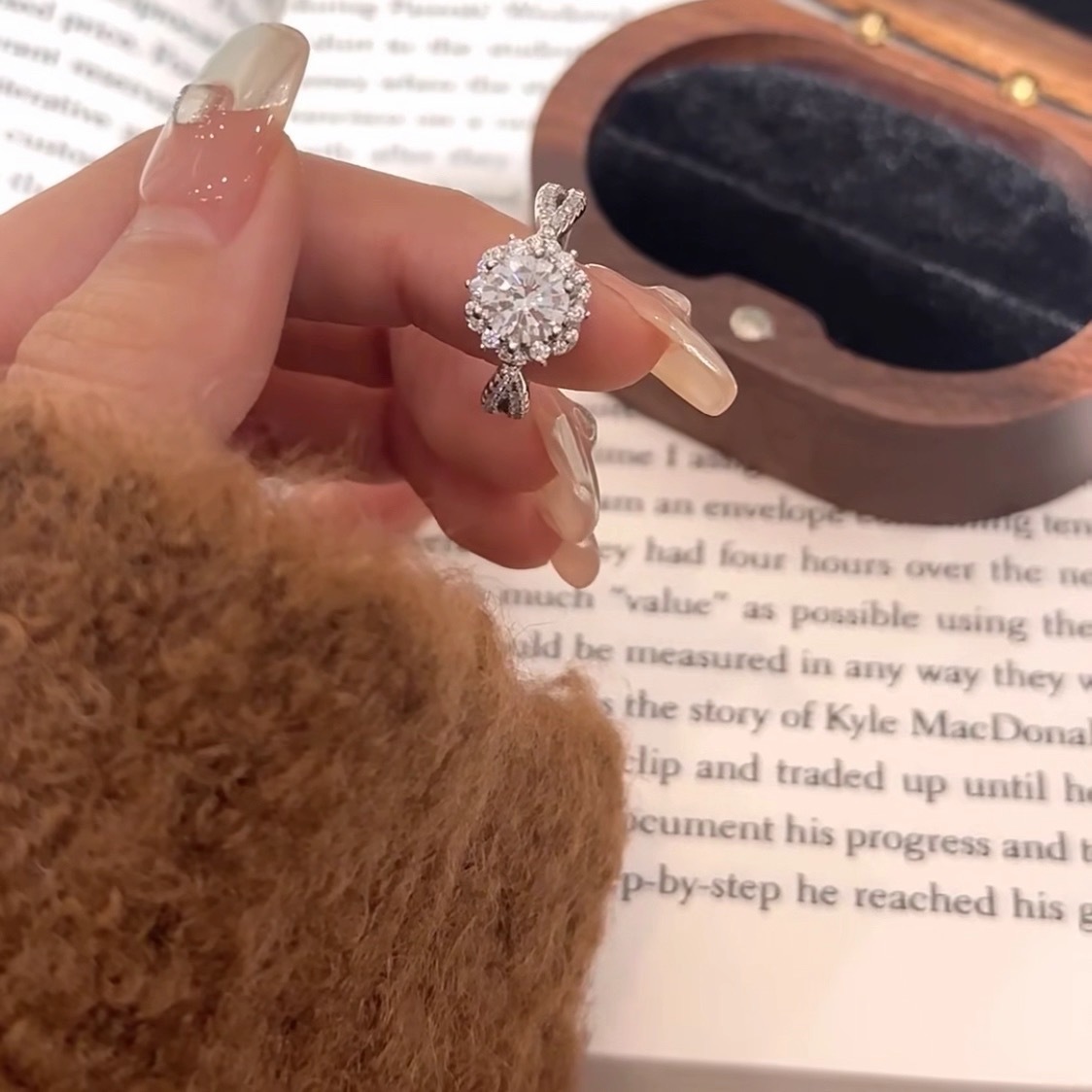 Sparkling Full Diamond Twist Arm Micro-Inlaid Open Ring for Women, Light Luxury Versatile Simple Ring, Niche Design Snowflake Trend