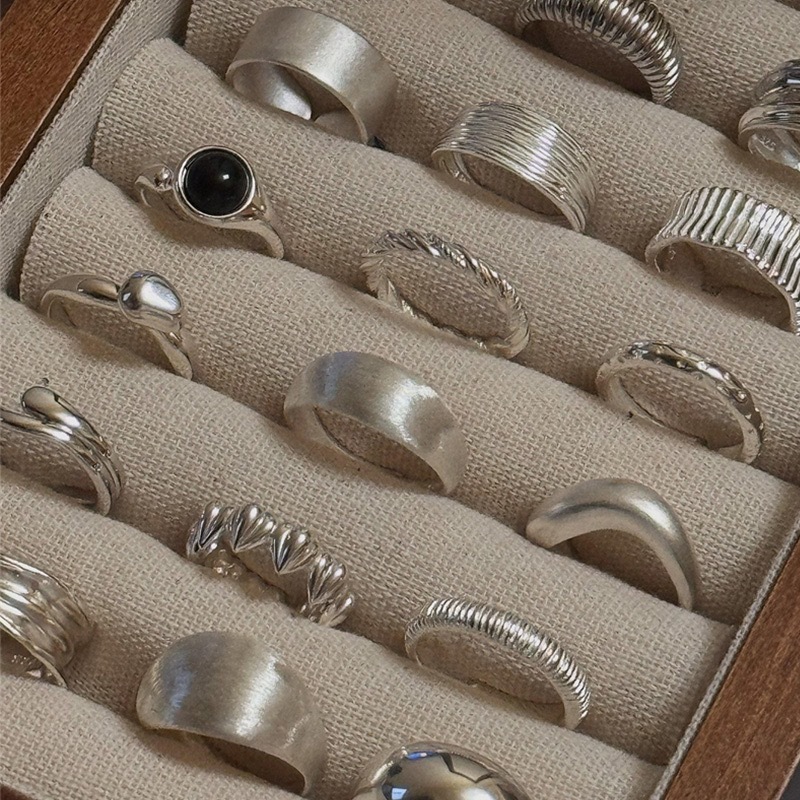 Vintage Heavy-Duty Plain Agate Ring, Non-Fading, Niche High-End Light Luxury Adjustable Open Ring in Sterling Silver