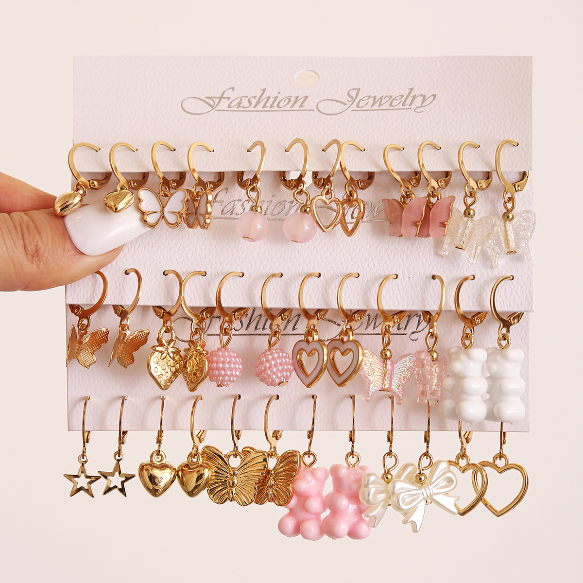 Cross-Border Hot Selling Cute Style Animal Bear, Butterfly Heart Shape Earrings Set Creative Personalized Earrings for Women