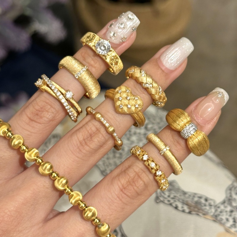 Lilo Antique Vintage Gold Brushed Ring for Women 925 Sterling Silver Non-Fading Niche Adjustable Ring