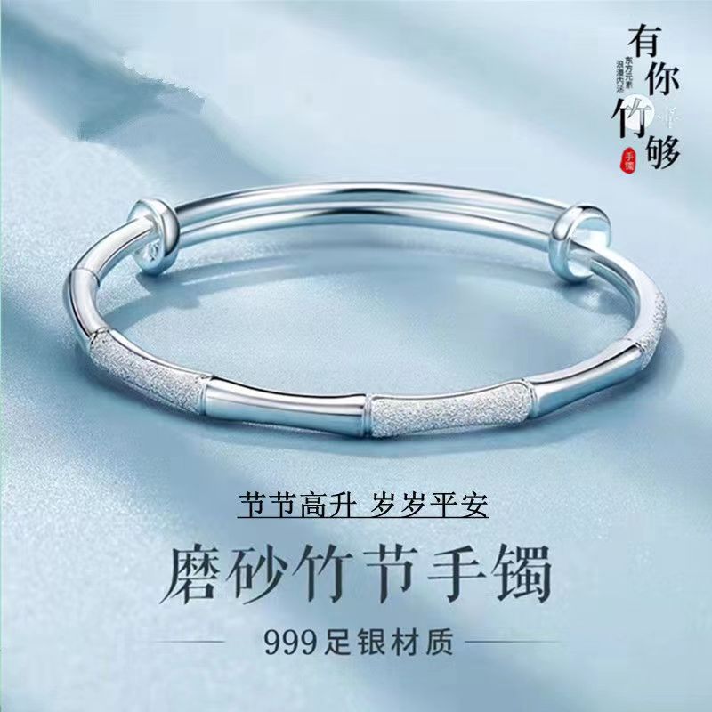 Bamboo Silver Bracelet Women's Sterling Silver Plated Young Solid Bracelet Antique Silver Bracelet Solid Birthday Gift for Girls