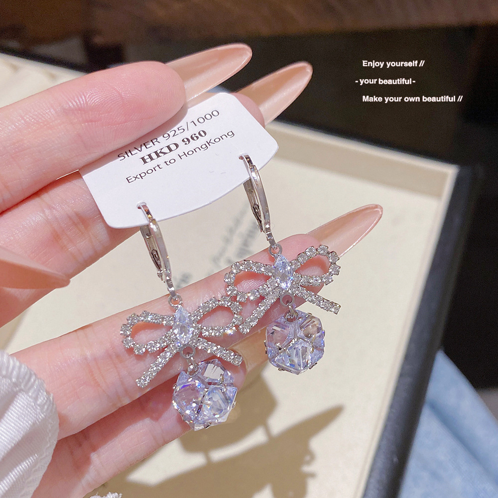 S925 Silver Needle Versatile Bow Zircon Earrings for Women, Light Luxury Simple Stud Earrings, Unique Versatile Temperament Fairy-Like Ear Cuffs