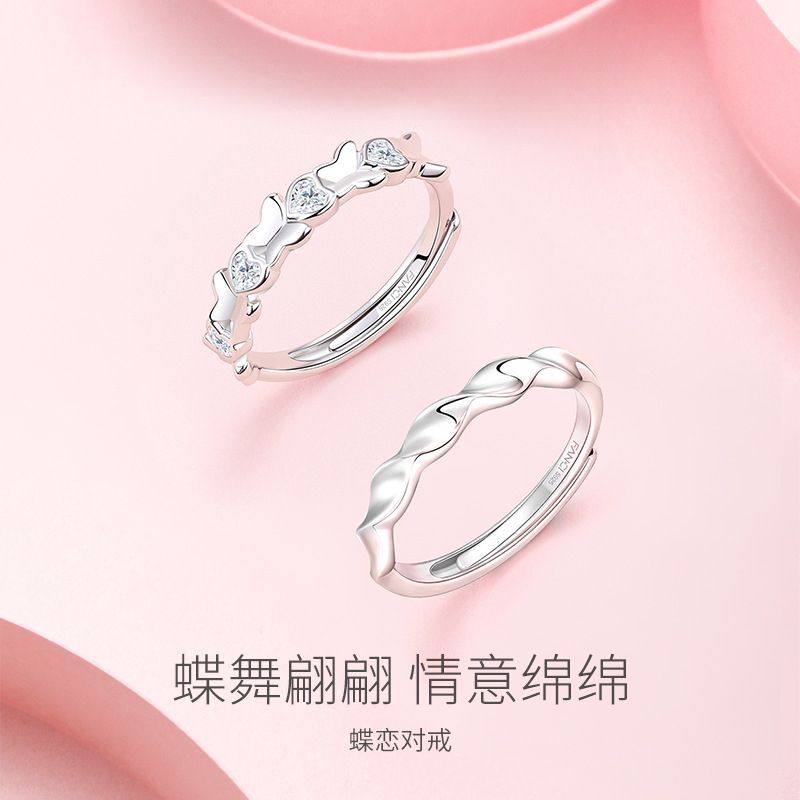 Butterfly Love Couple Rings: a Pair of Rings for Men and Women, Light Luxury with a High-End Feel, Sweet Open Rings, a Gift for Your Girlfriend to Commemorate