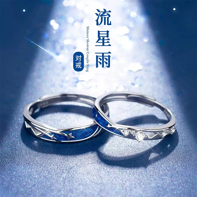 Romantic meteor shower couple ring men and women a pair of open design ring Tanabata commemorative holiday gift for girlfriend