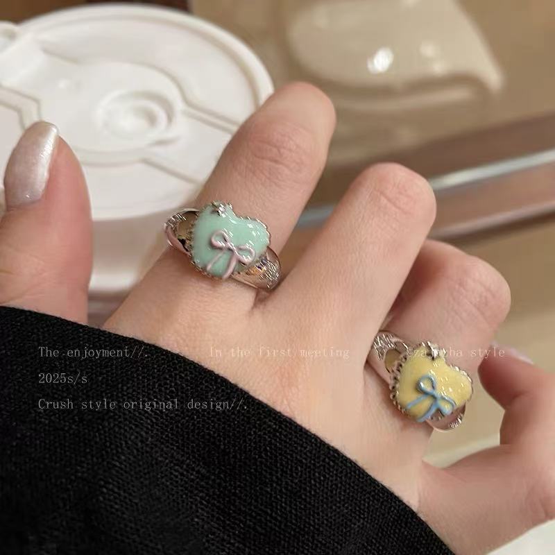 Summer Sweetheart~Bow Heart Dripping Glaze Ring Women's Niche Design Fashionable and Sweet Student Stacking Ring