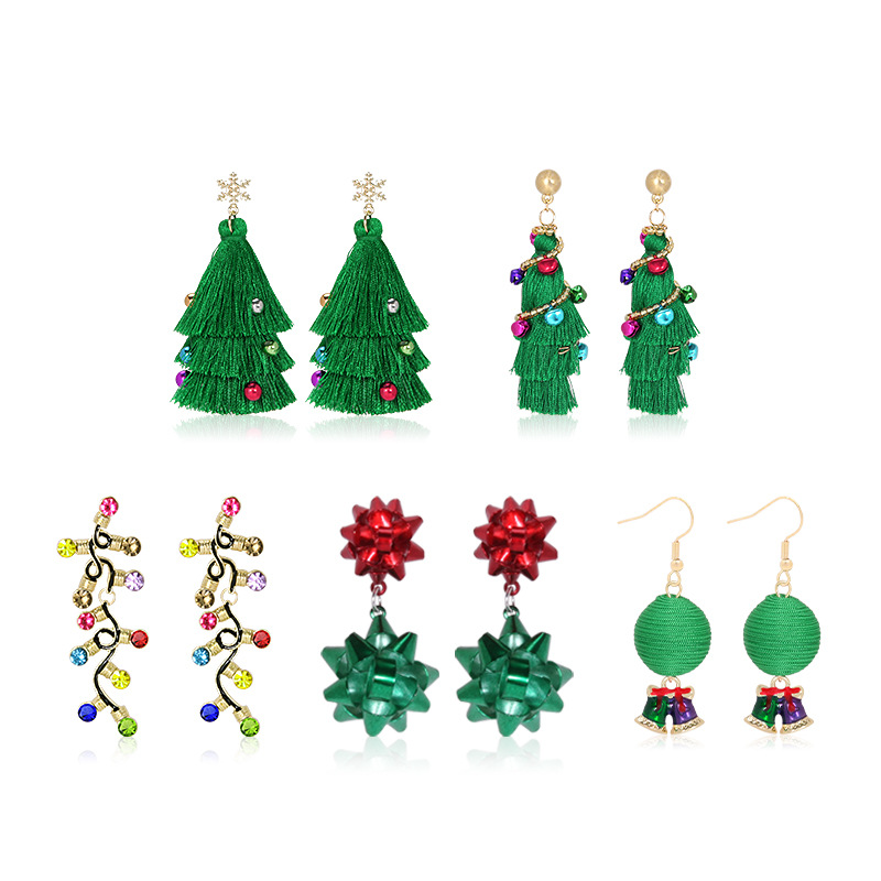 European and American New Christmas Earrings for Women, Sense of Design Design, Long Alloy Light Bulb, Christmas Tree Garland, Bell Earrings