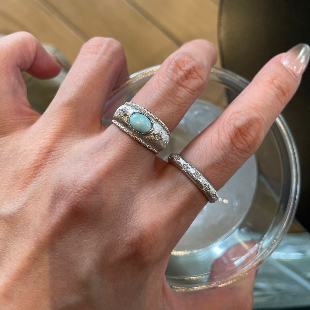 Xiaohongshu's Popular Cool Vintage-Style Handcrafted Brushed Sea-Pattern Stone Ring for Women, Light Luxury with a High-End Feel, Available for Dropshipping