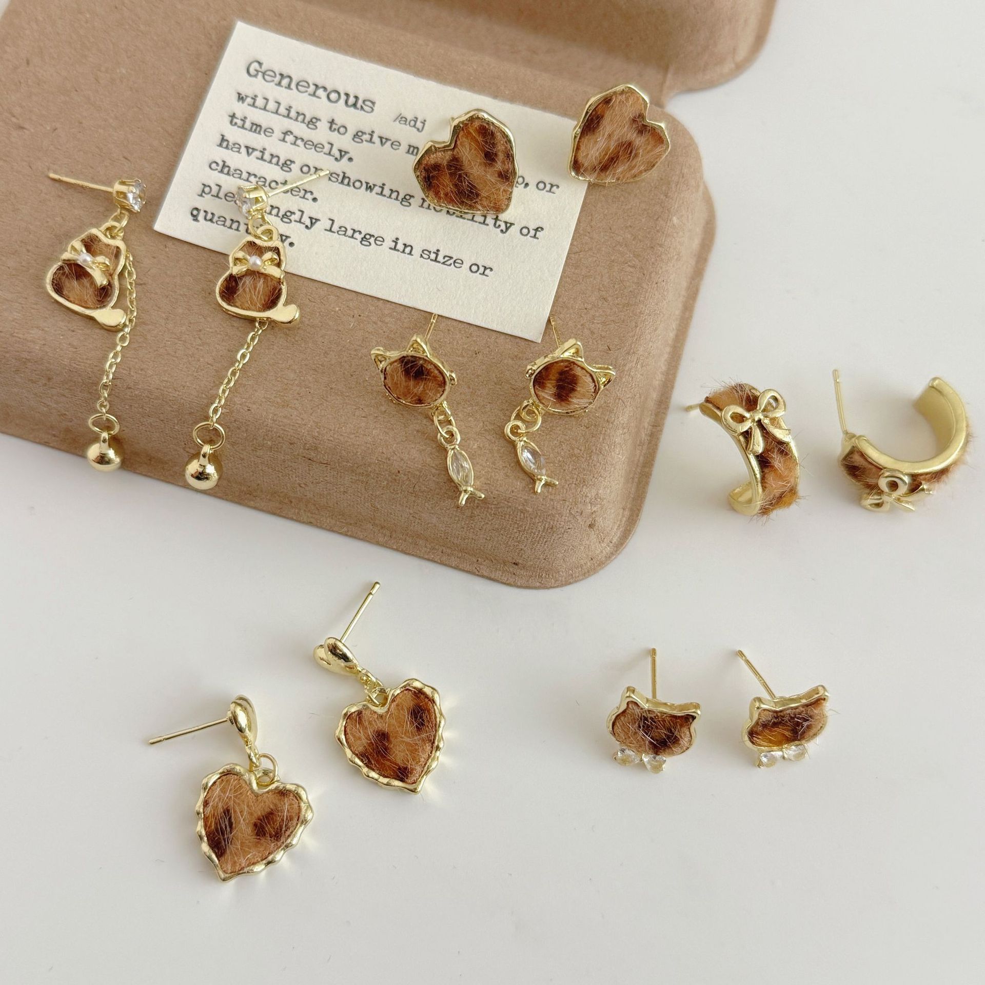 [Leopard print collection] autumn and winter earrings women's sweet and exquisite Maillard color high-end sense new earrings earrings