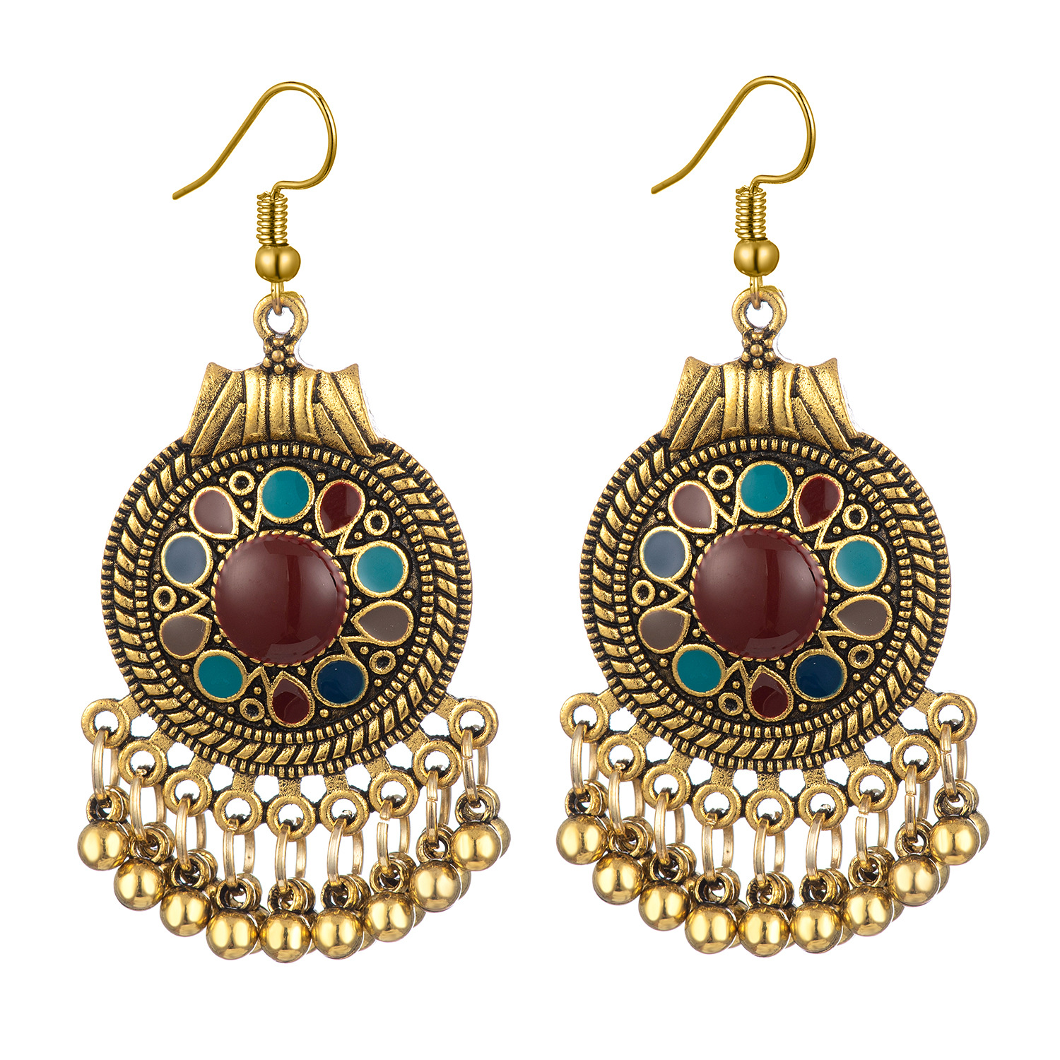 Bohemian Hot Earrings Ethnic Style Round Small Flower Oil Drop Earrings Fashion Women's Indian Style Earrings