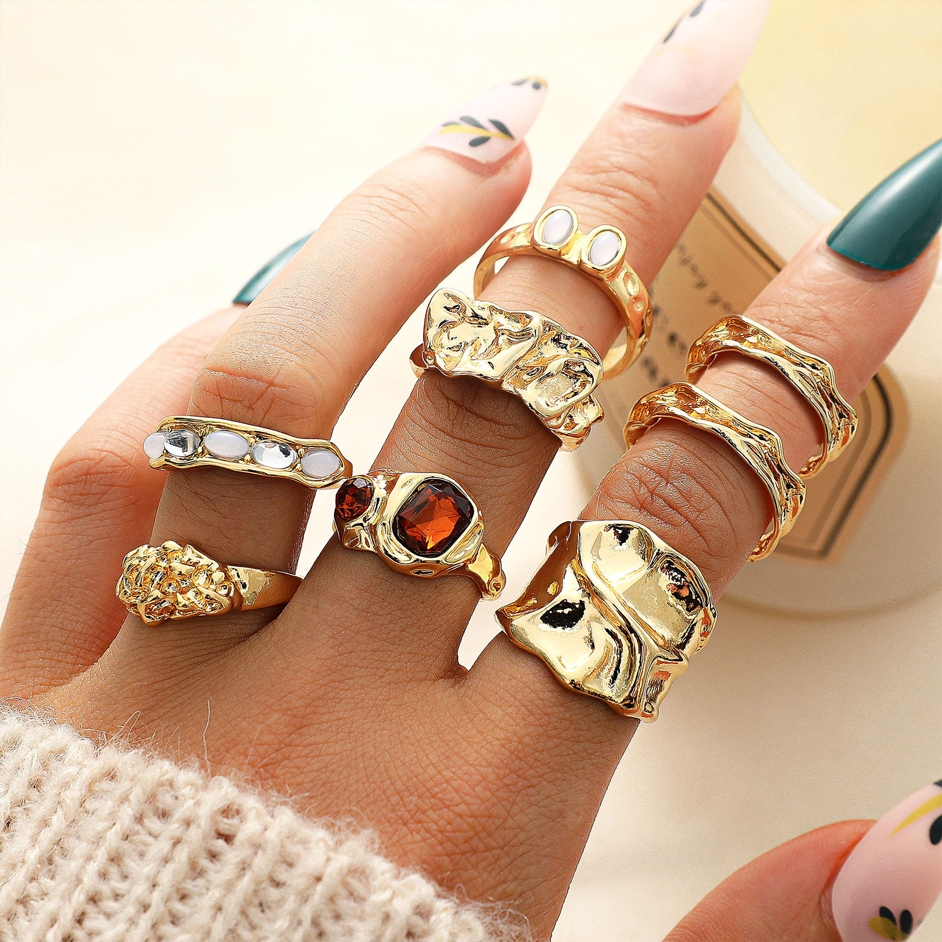 European and American Cross-border Geometric Niche Design Fashion Retro Alloy Ring Irregular Diamond Ring suit Women