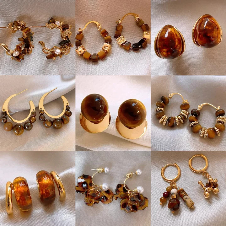 Maillard Retro Coffee Color Earrings Niche Hong Kong Style Accessible Luxury High-End Earrings Elegant Fashionable Versatile Earrings for Women