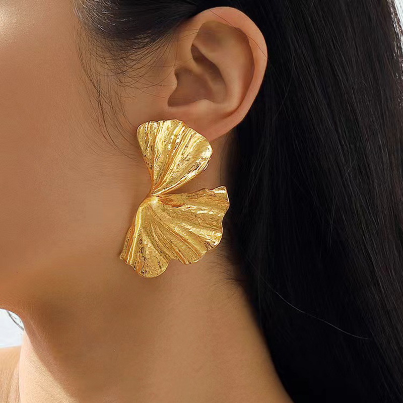 ZA European and American Cross-border Exaggerated Earrings Metal Wind Geometry Irregular Ginkgo Leaves Fold Twisted Leaves Earrings for Women