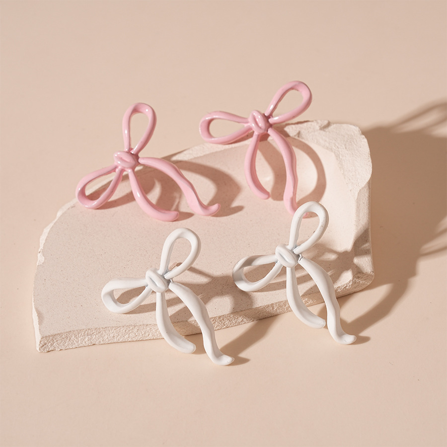 Sweet and Small Paint Bow Silver Pin Earrings Fashion Internet Celebrity Simple All-match Elegant High-end Commuter Earrings for Women