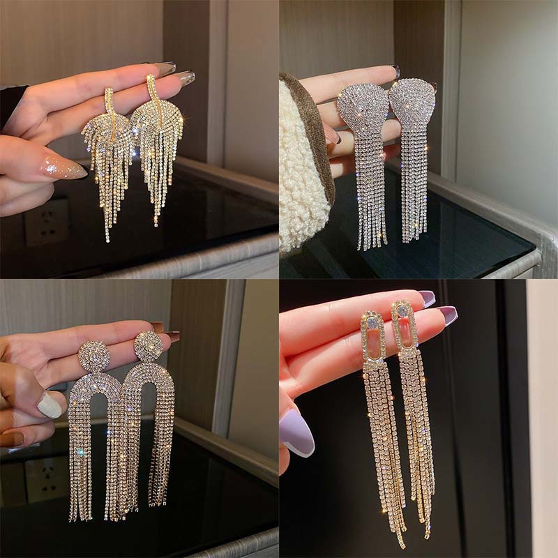 Silver Needle Full Diamond Long Tassel Cold Wind Earrings European and American Exaggerated Personality Internet Celebrity Earrings Trendy Elegant Earrings for Women