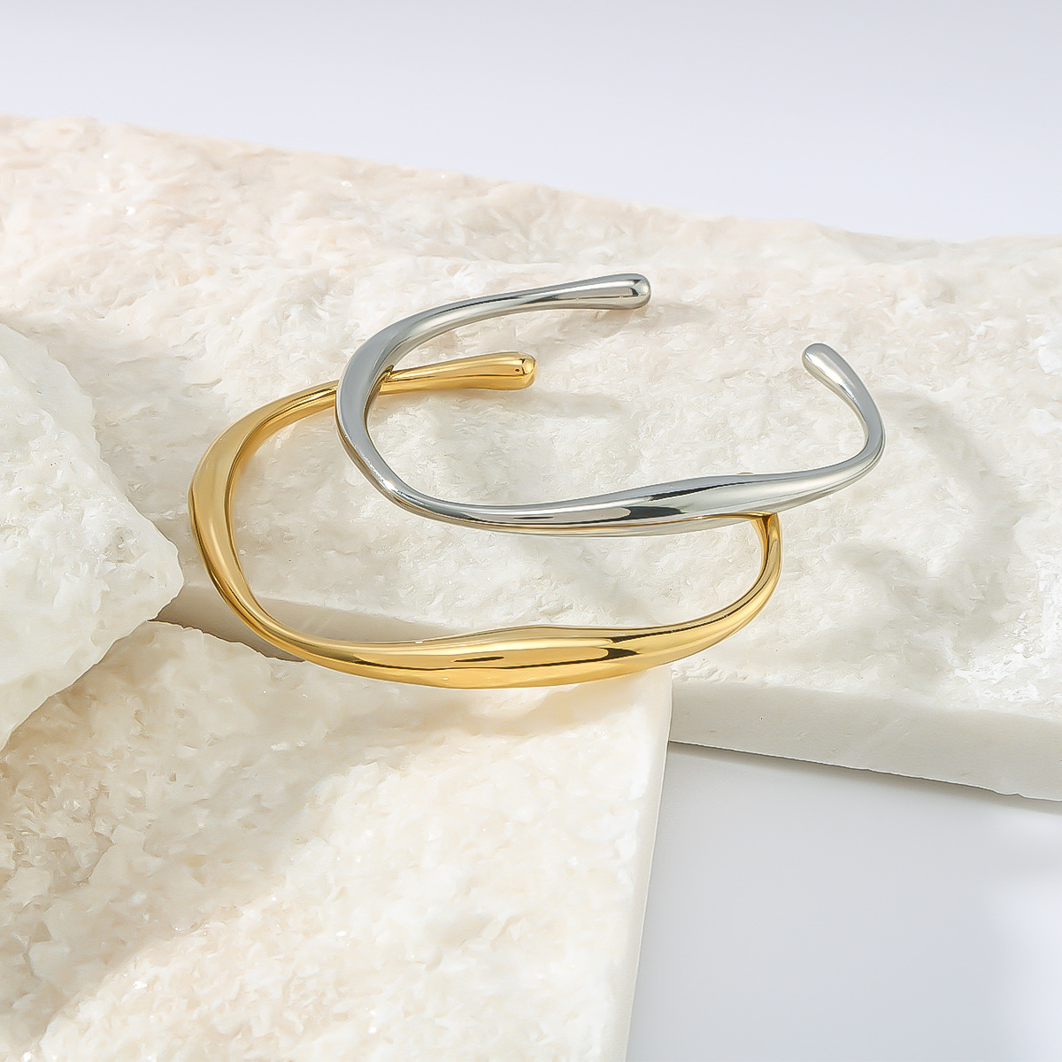 European and American cross-border fashion ins style titanium steel 18K gold-plated oversized irregular C- shaped open bracelet Female Factory wholesale