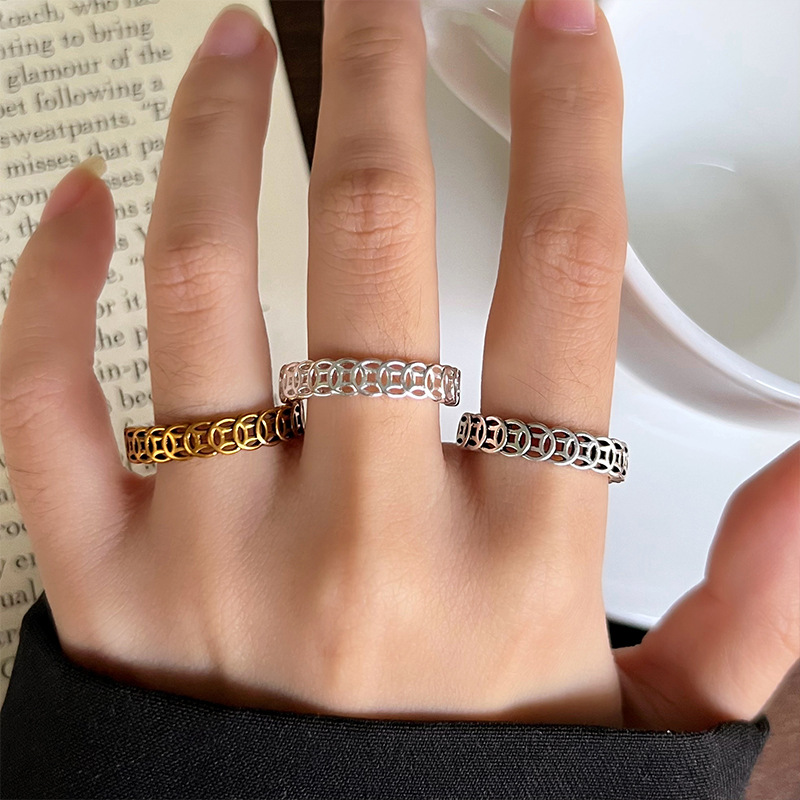 Retro Copper Coin Stacked Ring with Coins, Antique Gold Jewelry, 925 Silver Ring for Women, Simple Cross-Border Wholesale