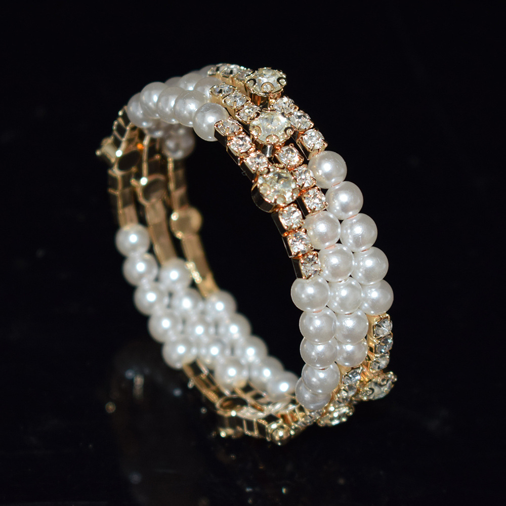 European and American Cross-border Pearl Rhinestone Wrapped Open Bracelet 3/5 Row Diamond Bracelet Women's New Entry Light Luxury French 1173