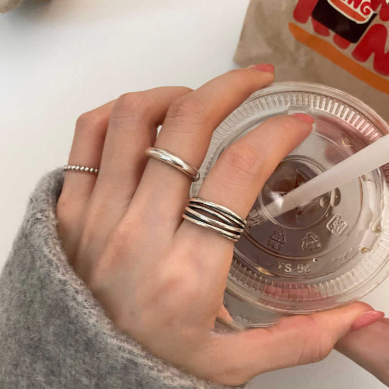 South Korea Dongdaemun S925 Silver Plated Cross Winding Retro Multi-Layer Ring Women's Ins European and American Cold Style Open Ring