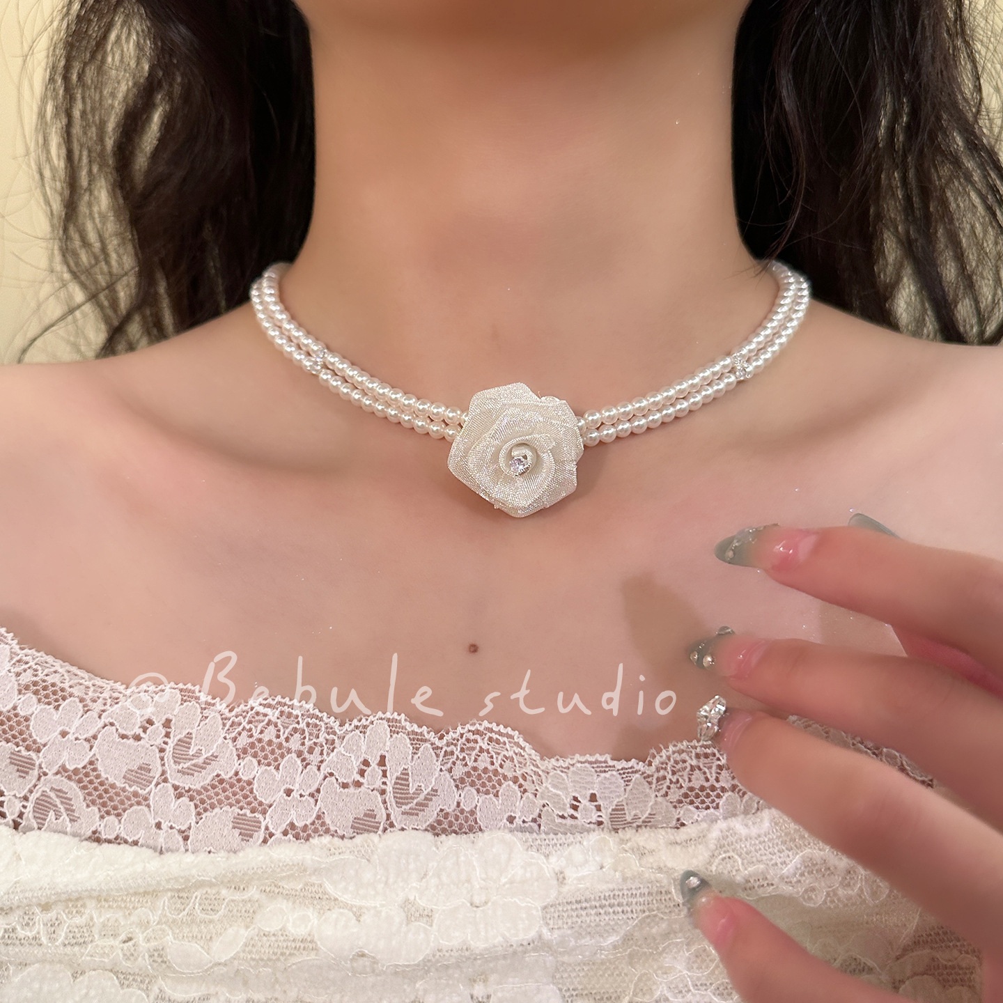 Jiehua Shanni~Rose Pearl Necklace Women's Sweet Flower Double Layer Clavicle Chain Easiest for Match Design Necklace