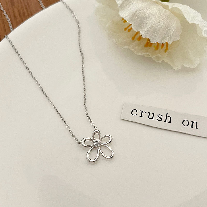 Gan Jia S925 Sterling Silver Small Fresh Hollow Flower Necklace Sweet Summer Niche Atmosphere Clavicle Chain New