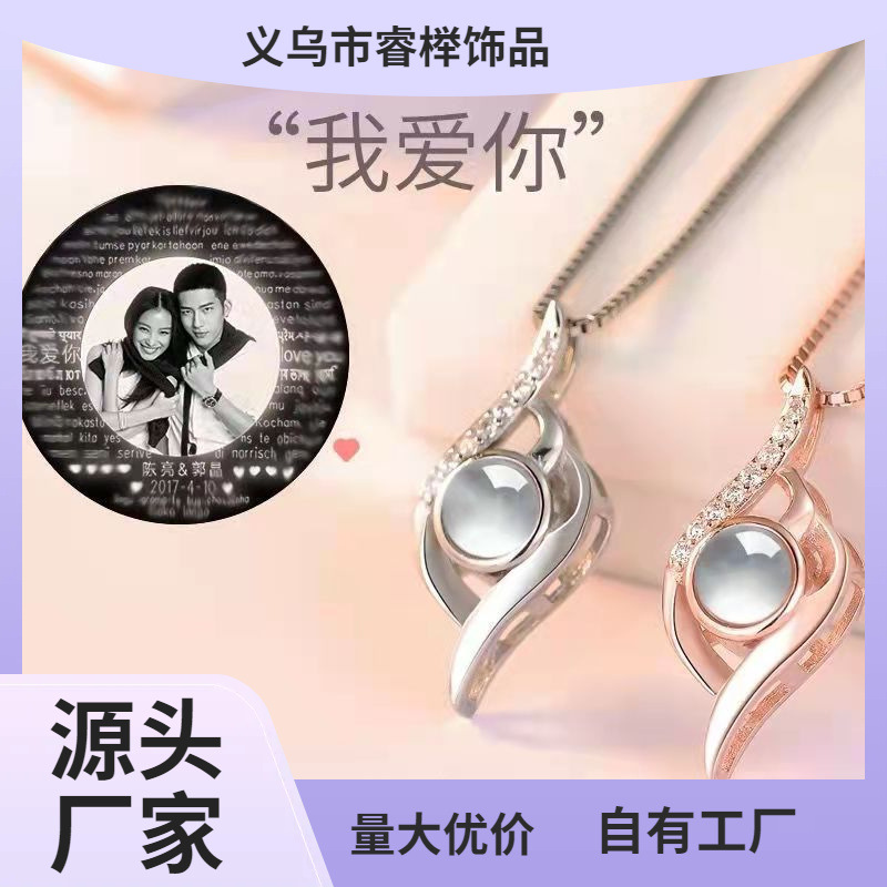 100 languages I love you necklace love confession projection tremolo clavicle chain birthday gift necklace women wholesale