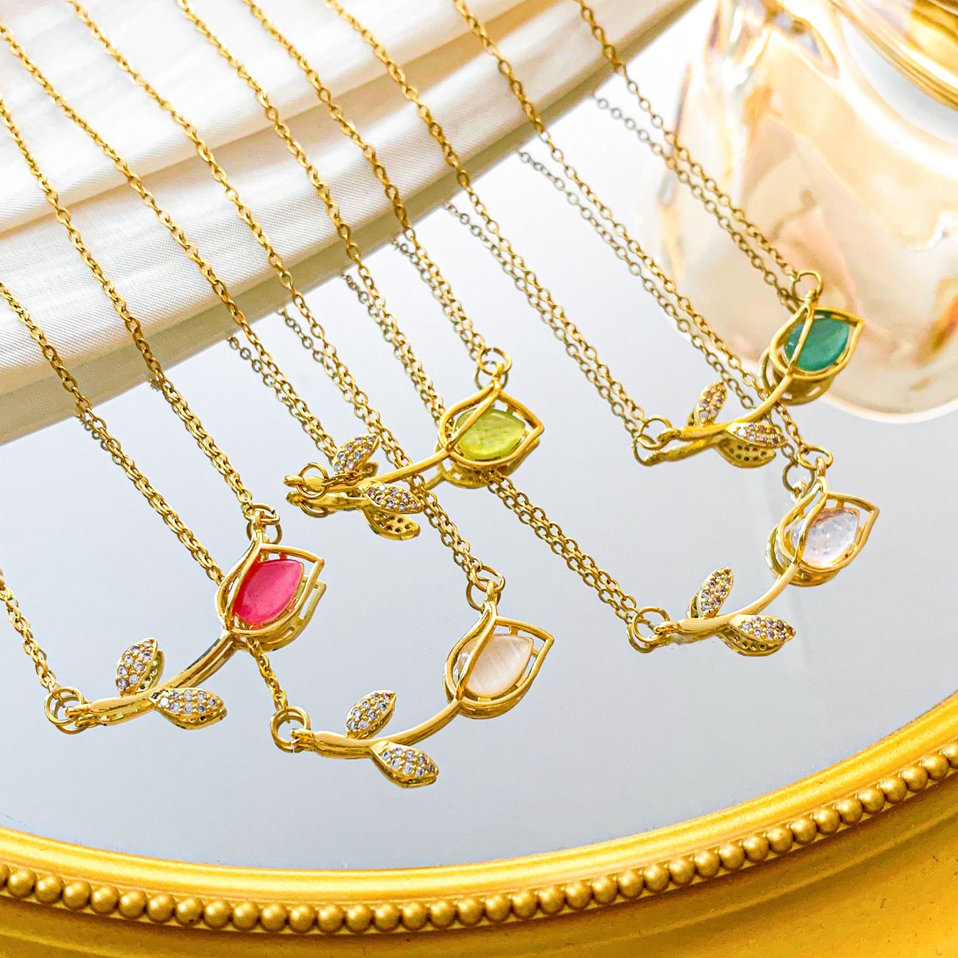 Necklace Cat's Eye Tulip Necklace Niche Design Ins Style Accessible Luxury Sweet Small Fresh Non-Fading Accessories