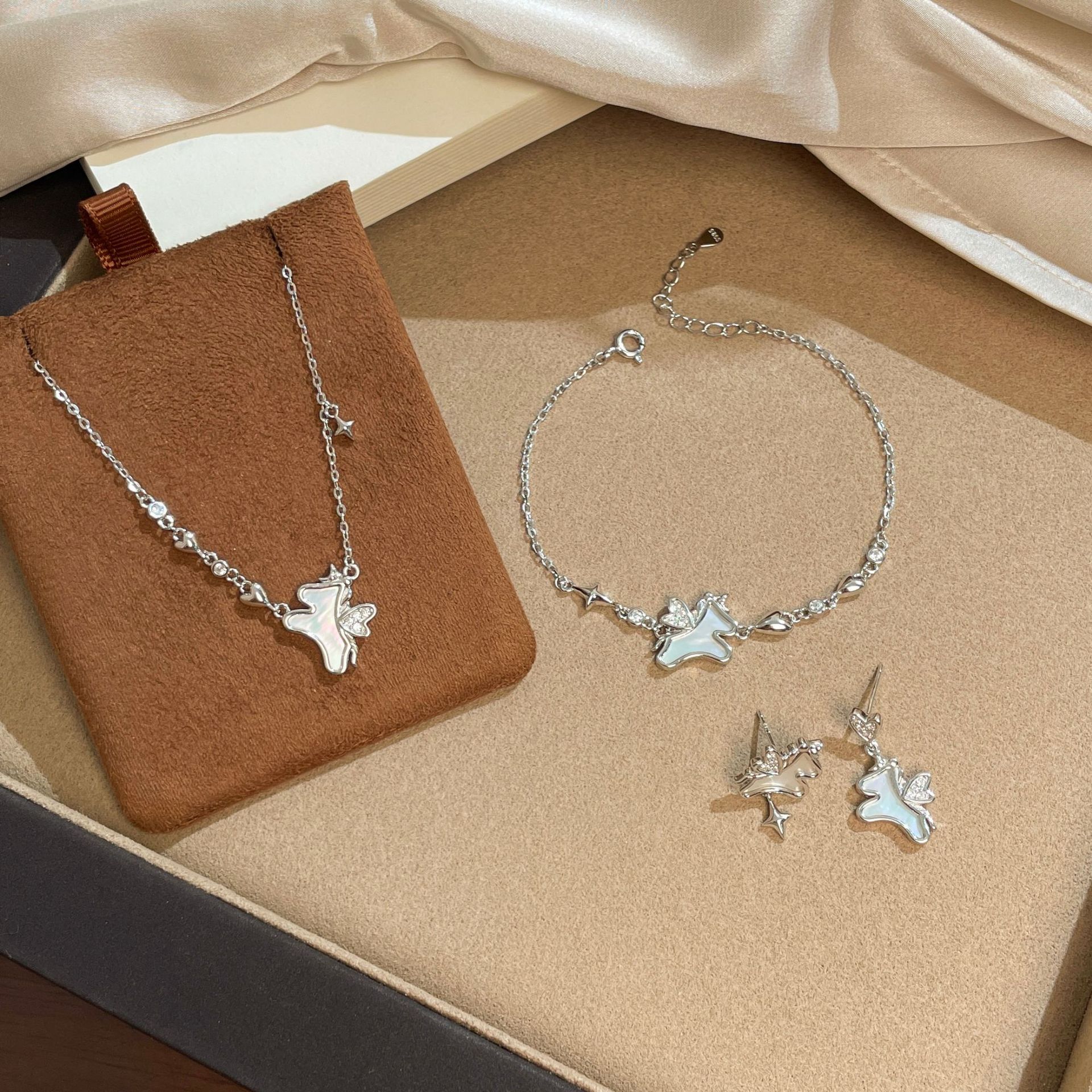 Tich Original Fantasy Unicorn Necklace Women's S925 Sterling Silver Cute Light Luxury Shell Bracelet Asymmetric Ear Jewelry