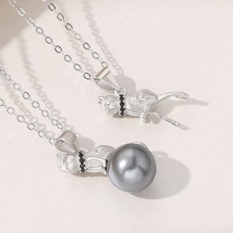 European and American Cross-Border Personalized Fashion Shell Bead Pendant Women's Niche Design High-End Cat Clavicle Chain Pendant Necklace