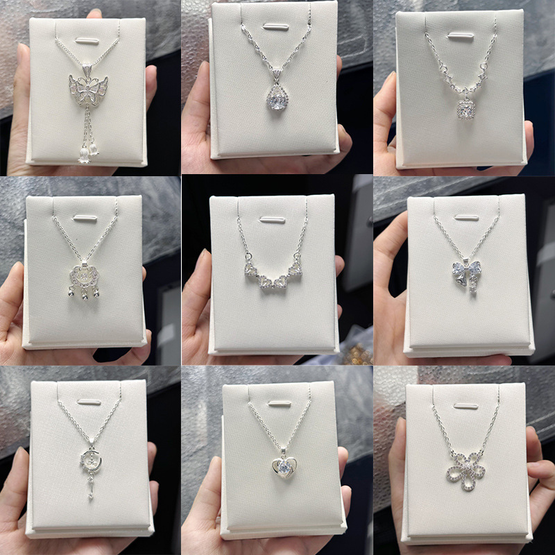 Korean-Style Ins Niche Design Silver-Plated Necklace with Micro-Inlaid Zircon, Sweet and Elegant, Light Luxury, Versatile Clavicle Chain