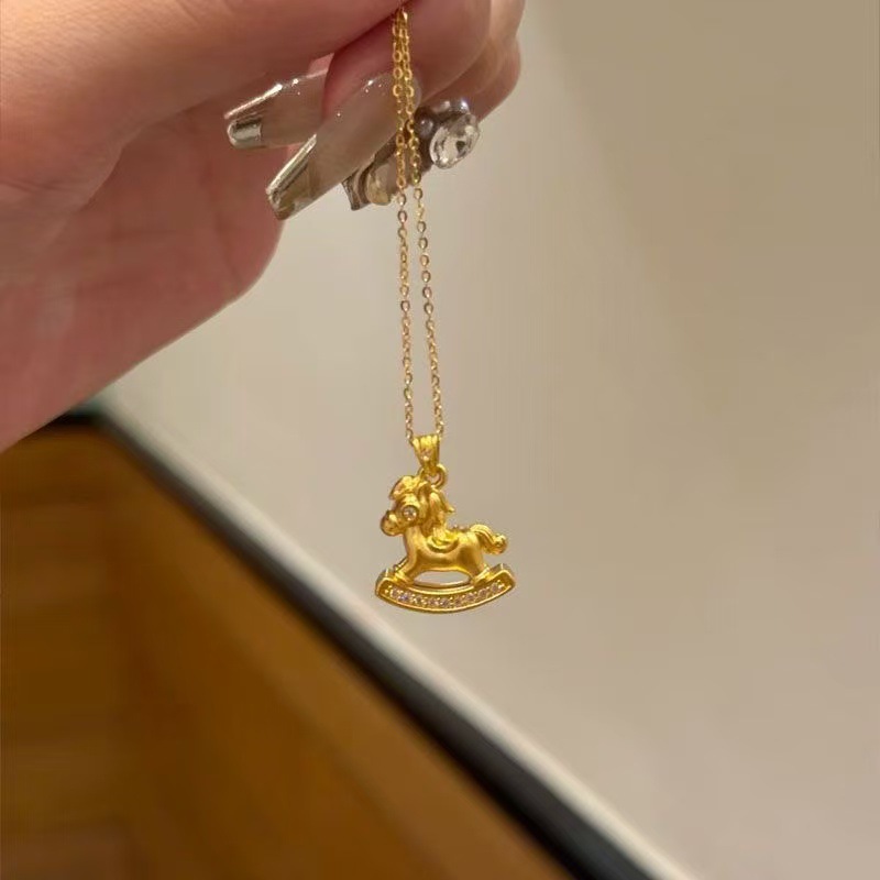 2026 New Cute Rocking Horse Pendant Necklace Sweet Simple Super Shiny Niche High-End Popular on Xiaohongshu