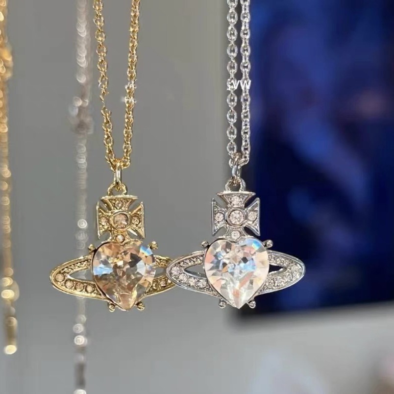 Empress Dowager Love Hao Stone Pendant Saturn Necklace Female Vivian Sweet Elegant Light Luxury Flash Diamond Ins Clavicle Chain