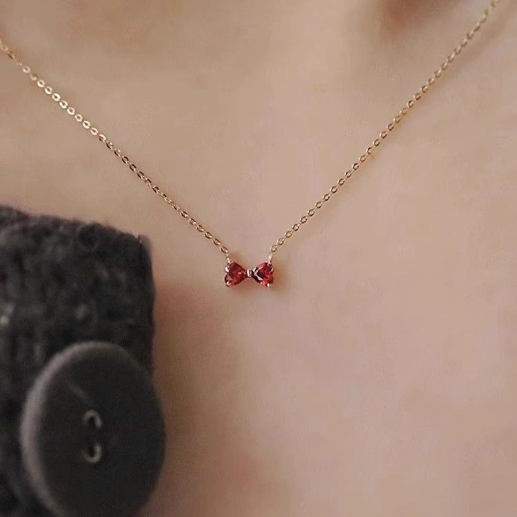 Mini heart bow 14K gold necklace for women Japanese sweet exquisite colored gold silver clavicle chain gift light luxury