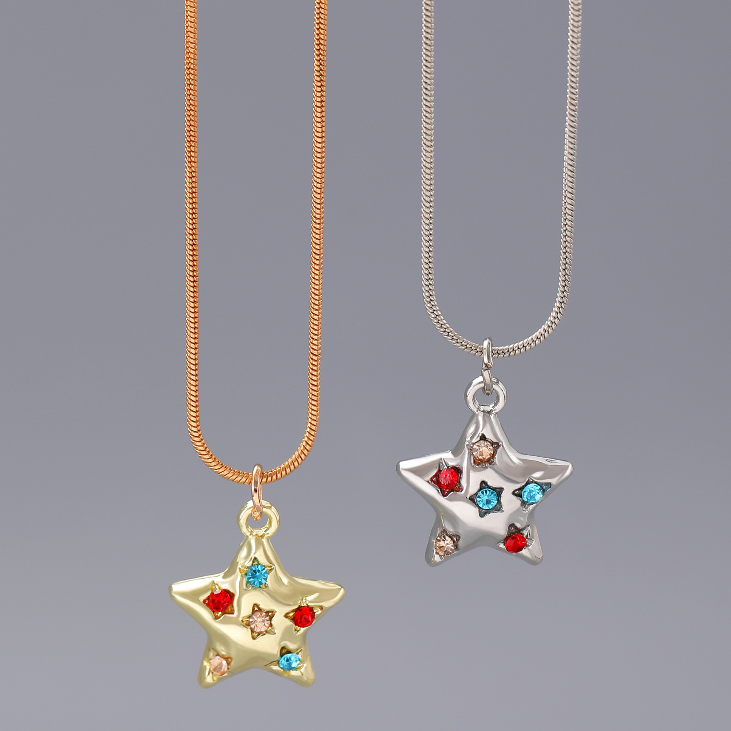 Ins Style Cute Diamond Star Snake Chain Pendant Necklace Five-pointed Star Retro Simple South Korea All-match Sweet Cool Girl
