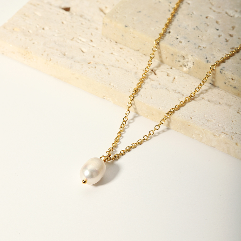 Europe and the United States INS net red with fresh water pearl pendant high sense 18K gold clavicle chain women's fashion necklace jewelry