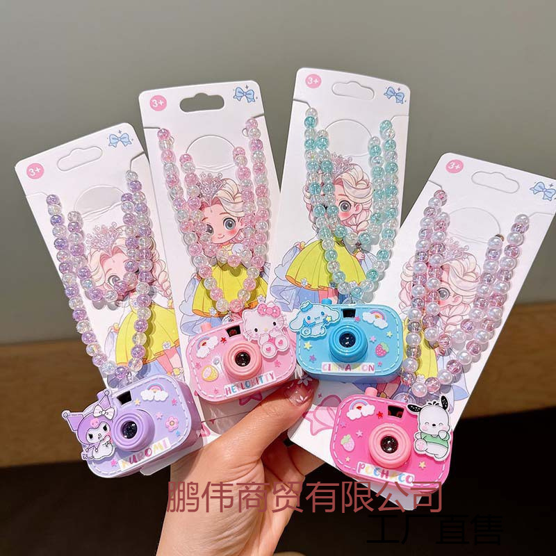 Children's Projection Camera Necklace Children's Beaded Necklace Jewelry Little Girl Cute Glowing Toy Birthday Free Shipping