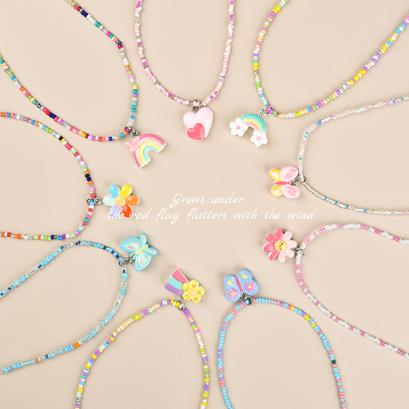 Little Girl Girl Clavicle Chain Childlike Colorful Beaded Dopamine Children's Necklace Primary School Student Cute Necklace Wholesale