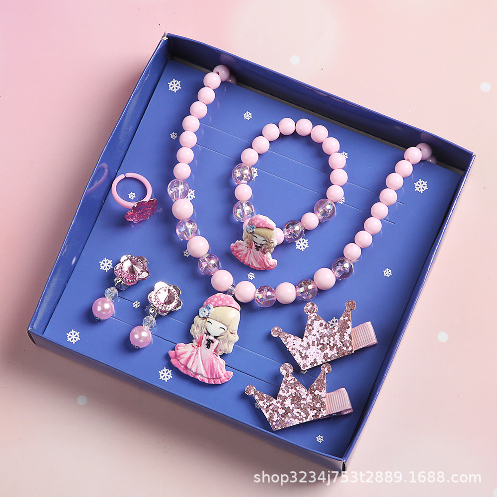 Frozen Children's Jewelry Gift Set Little Girl Necklace Set Bracelet Ring Hairpin Girls' Accessories