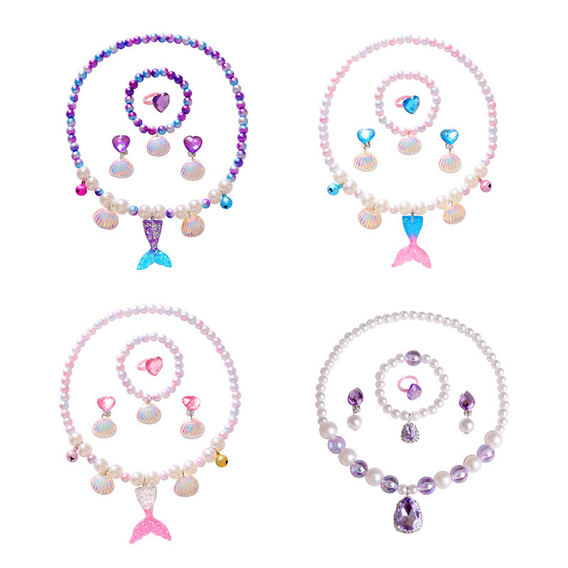 2021 Children's Necklace Mermaid Tail Girls Pearl Necklace Bracelet Ring Earrings Set Girls Baby Accessories