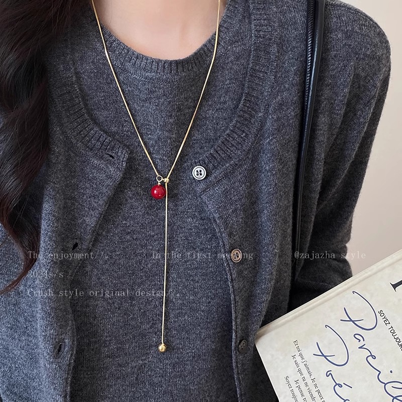 Ankora red pearl sweater chain girls autumn and winter 2024 new Christmas atmosphere temperament necklace light luxury accessories