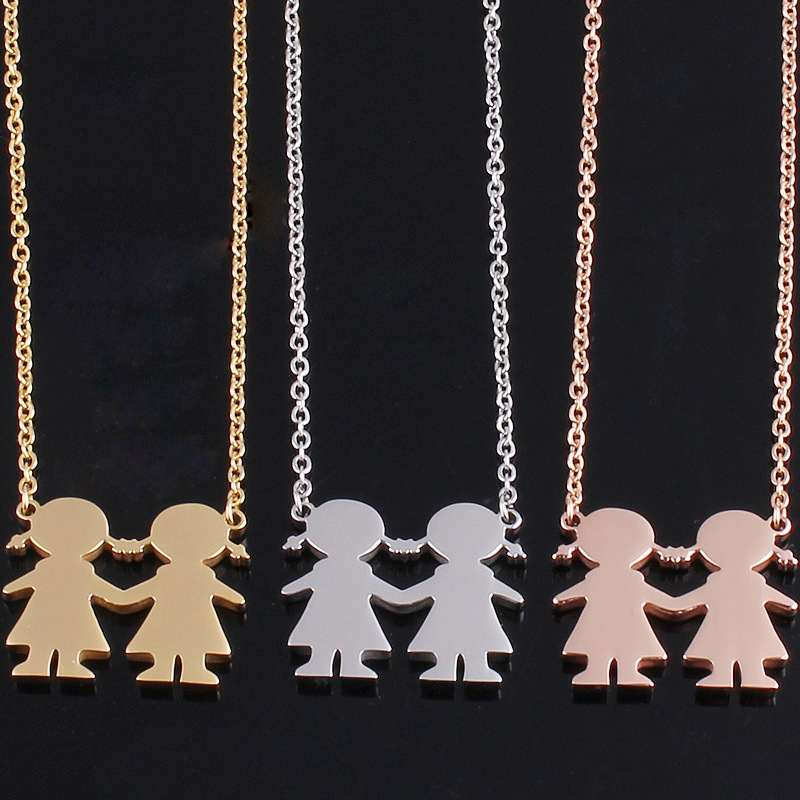 wish Hot Parent-Child Accessories Real Gold Plated Two Girls Titanium Steel Necklace Support Engraved Name Necklace