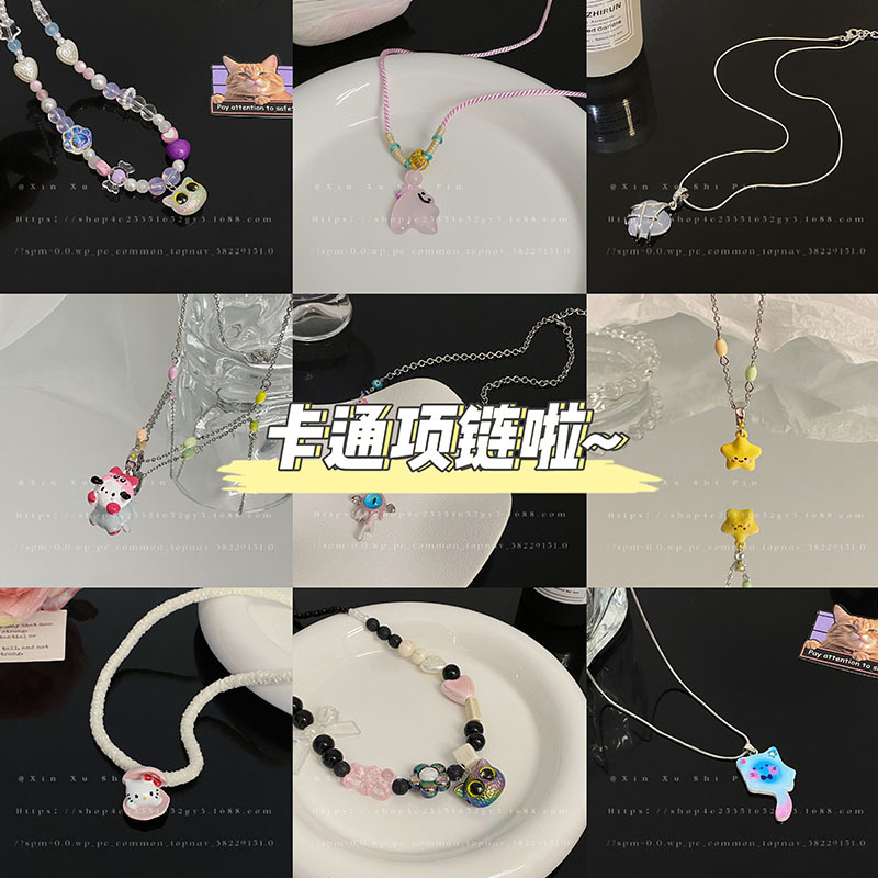 Little Red Book same sweet cartoon drop glaze star Kate cat necklace all-match girl heart clavicle chain jewelry wholesale