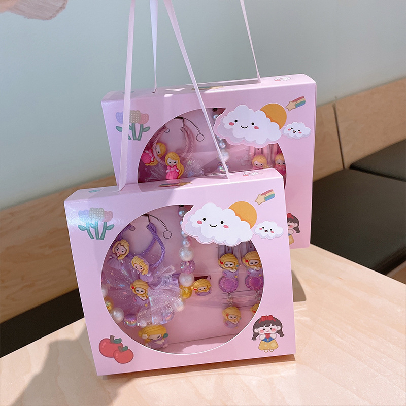 Children's Jewelry Gift Box Set Little Girl Hair Accessories Jewelry Birthday Gift Princess Necklace Earrings Suitcase Wholesale