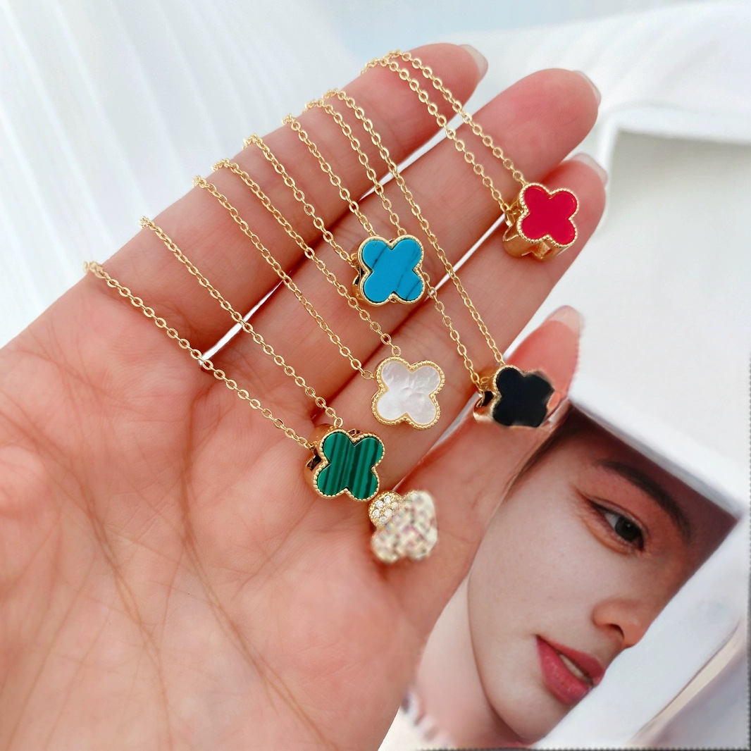 Lucky Necklace Girls' Four Grass Necklace Copper Plated 18K Gold Simple Pendant Light Luxury Small Internet Celebrity Clavicle Chain